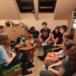 Cesta se nám trošku protáhla, ale v 19:00 jsme již večeřeli v útulném penzionu s opravdu „originálním názvem“ Jurajski Gosciniec. Podle programu nás dnes čekalo pouze BOZ. Azyl nám poskytla seminární místnost penzionu. „Tohle je sedací úvazek, takto se navazujeme, v „průvodčíku“ se dočteme toto …. tolik informací???“ …. až se z toho nováčkům málem zamotala hlava… a to je teprve pátek. Ale nic se nemá „hrotit“ do krajnosti a hodinka „školení“ byla tak akorát. Volná zábava se „bohužel“ odehrávala na společném pokoji instruktorů a chlapců (protože byl největší). Páteční večer byl sice ukončen po večerce, ale když všichni zpívali, dokonce ve třech jazycích, a hráli na dvě kytary, tak bylo potřeba přimhouřit oči.