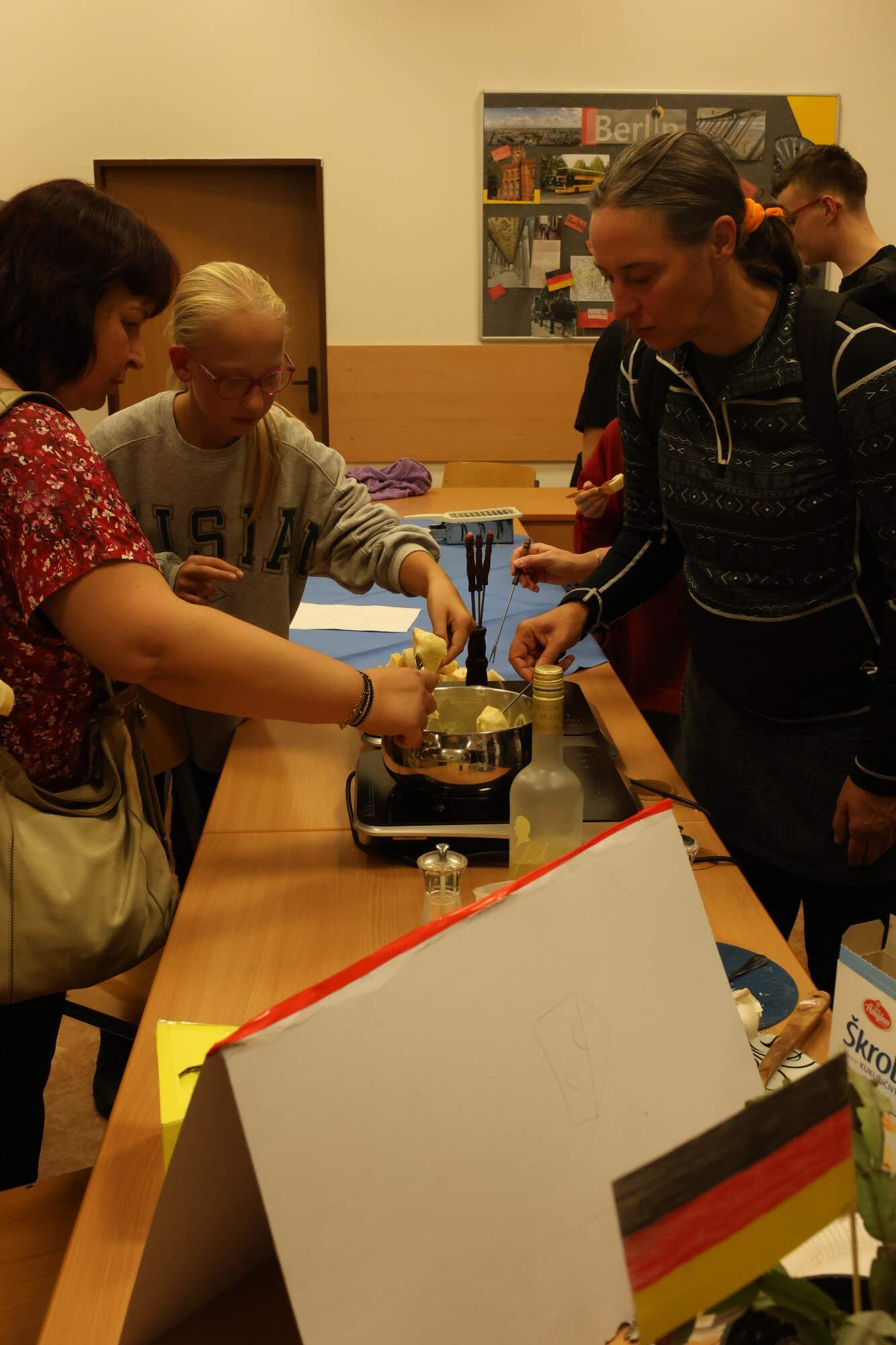 V němčině si pro startovní ročník Noci vědců připravili téma Proměny sýra v německé a švýcarské gastronomii. V průběhu odpoledne a večera nabídli 3 workshopy, kdy před očima návštěvníků a částečně i za jejich spolupráce představili 3 typické pokrmy: „Spätzle“, „Fondue“ a „Raclette“. Mile překvapil skutečně velký zájem publika a také fakt, že nabízené speciality vzaly v celkem krátkém čase zasvé!