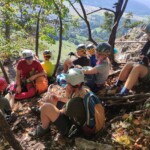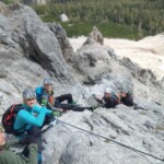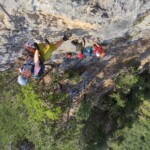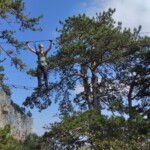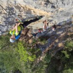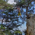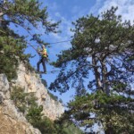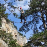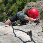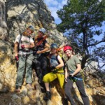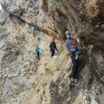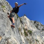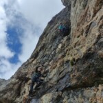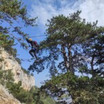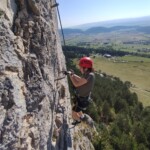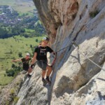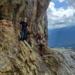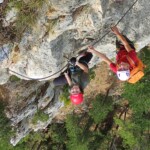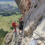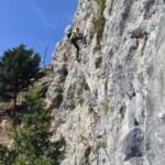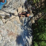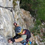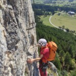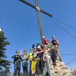 Přebalili jsme vše potřebné – ferratový set, sedák, přilbu, svačinku – do menších batohů a za svižného tempa jsme se vydali pod nástup. Krátké BOZ a hurá do stěny. Naše sestava „horonadšenců“ zvládla i náročnější pasáže výstupové cesty, takže lanový most nebo kramle byly pak již za odměnu. Kulisa modré oblohy, zelených borovic a „barevného“ vápna byla dokonalá. Na náhorní plošině nás čekala otevřená horská chata. Pár fotek u kříže a hurá dolů. Tentokrát už „normálkou“ po turistické cestě. Pak následoval přesun do kempu. Postavili jsme stany a začali připravovat večeři. Každý v rámci svých možností přidal ruku k dílu a po chvíli jsme měli těstoviny se sýrem hotové. Od jídla jsme se pozvolna přesunuli k táboráku a zakončili den opékáním špekáčků a zpíváním.