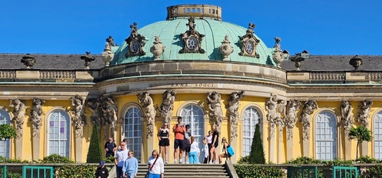 Za návštěvu stál určitě zámek Sanssouci a jeho přilehlé zahrady. Zde se nacházely i další překrásné budovy, fontány či oranžerie. Prošli jsme také Braniborskou bránou a Holandskou čtvrtí (Holländisches Viertel). Naše nohy nás také zavedly do kavárny, kde si někteří mohli zkusit objednat v němčině. Přišli jsme na to, že se nemusíme ničeho bát a že na tom nic těžkého není. Autobusem jsme se pak přesunuli do první ubytovny našeho zájezdu Am Wannsee na okraji Berlína. Po vydatné večeři, kterou byl eintopf, jsme se jen celí unavení vydali do postele.