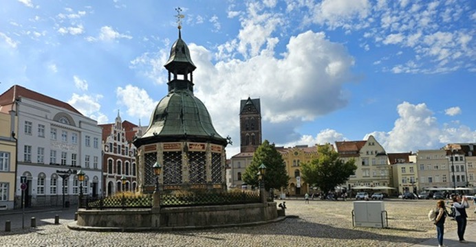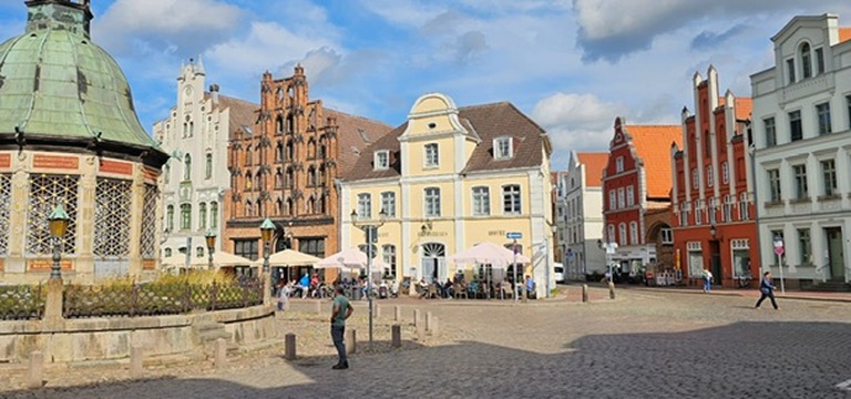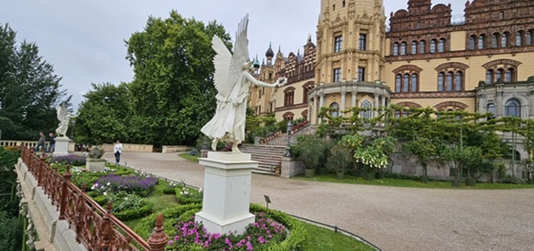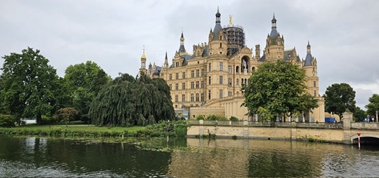 Další den jsme zavítali do Schwerinu a bývalého hanzovního města Wismaru. Ve Schwerinu jsme navštívili překrásný Zvěřínský zámek (Schweriner Schloss), který je někdy přezdívaný Neuschwanstein severu. Dovnitř jsme se bohužel nepodívali, ale zato jsme si prošli velmi krásné zahrady kolem zámku. Druhá naše zastávka bylo hanzovní město Wismar, které je zapsáno na seznamu světového dědictví UNESCO. Zde jsme také poprvé uviděli moře. Ochutnali jsme také výborné rybí speciality (Fischbrötchen) a měli možnost opět procvičit si naši němčinu. Prošli jsme si starou část města, která měla pro tuto část Německa typické cihlové domy. Po krásně stráveném dni jsme se přesunuli do naší druhé ubytovny v Lübecku. Večeři jsme si tentokrát zajišťovali. Snědli jsme si ji u řeky Trave, kde se nám nabídl krásný pohled na západ slunce.