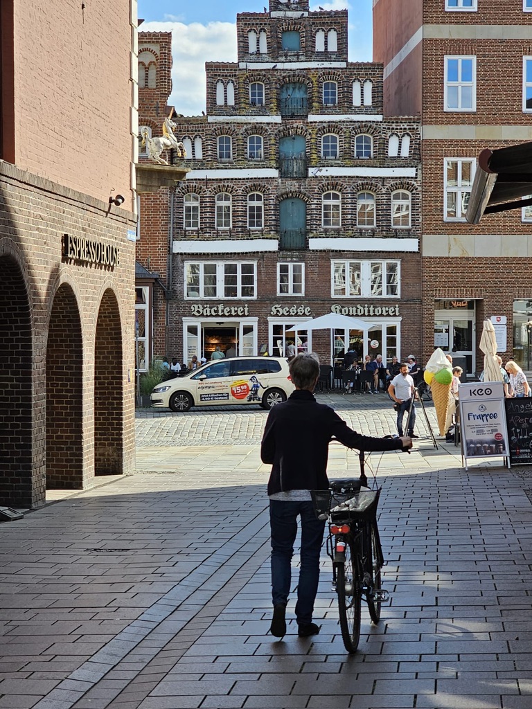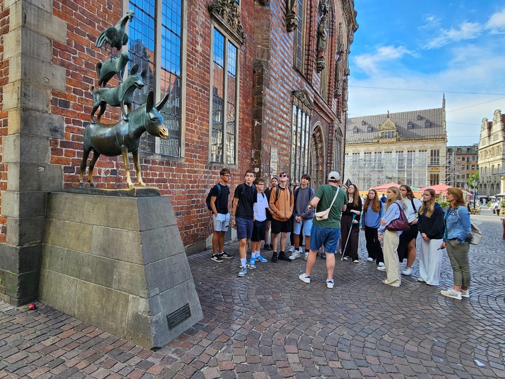 Poslední den našeho zájezdu jsme strávili v Brémách. Zde jsme měli původně domluvenou prohlídku radnice, ta se však nakonec nekonala. Místo ní jsme absolvovali hodinovou prohlídku města s průvodcem. Protože jsme byli velká skupina, rozdělili jsme se do tří menších. Každá skupinka dostala svého vlastního průvodce, který ji po městě provedl. Náš průvodce mluvil anglicky, takže jsme si mohli procvičit svoji angličtinu. Po prohlídce, kterou jsme ukončili podívanou na zvonkohru, jsme měli možnost si město sami projít. Navštívili jsme např. malebnou čtvrť Schnoor nebo ulici Böttcherstraße.
