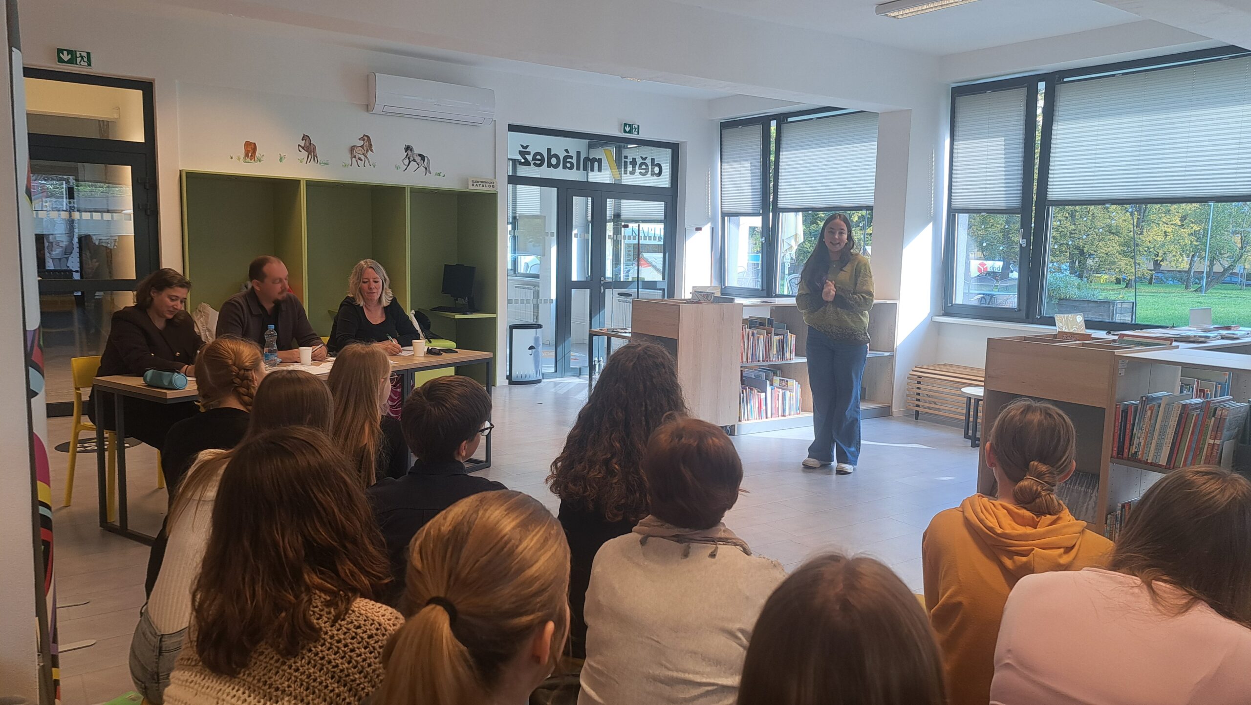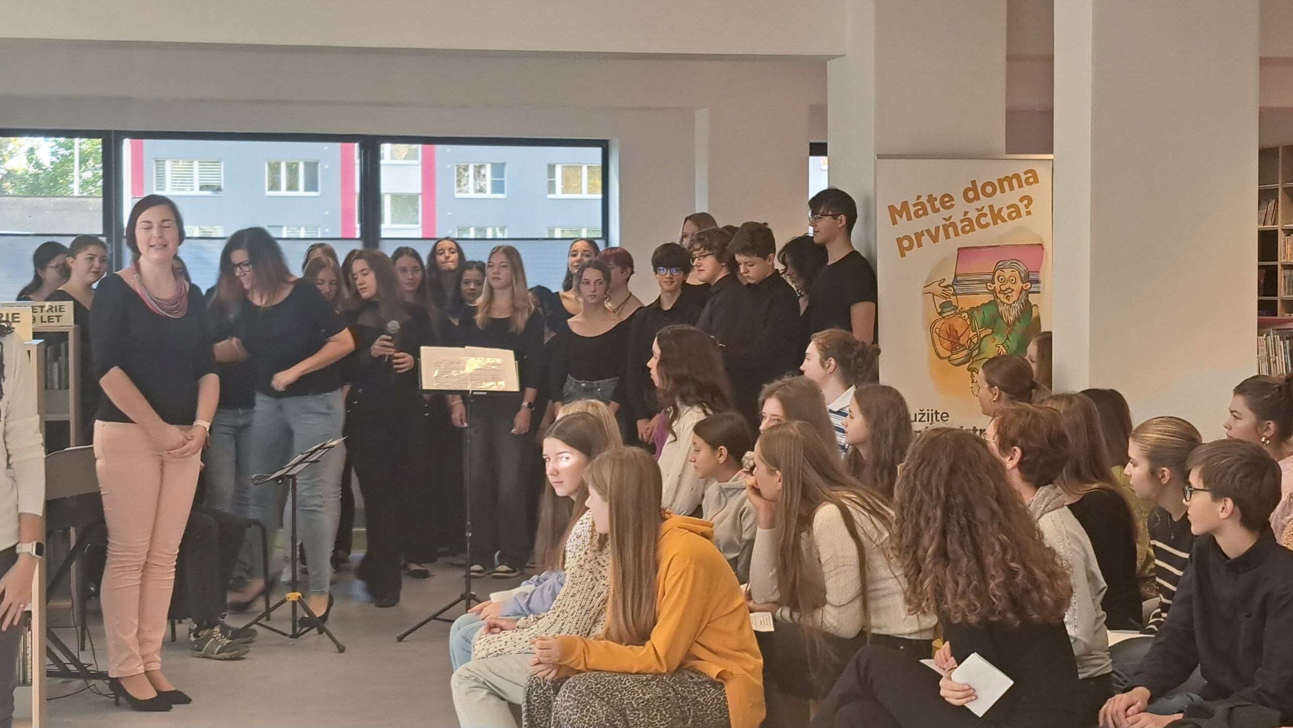 Celé dopoledne se neslo v přátelském duchu. Žáci pořádajícího gymnázia si pro nás dokonce připravili hudební vystoupení svého školního sboru, což nám pomohlo zbavit se počáteční trémy.