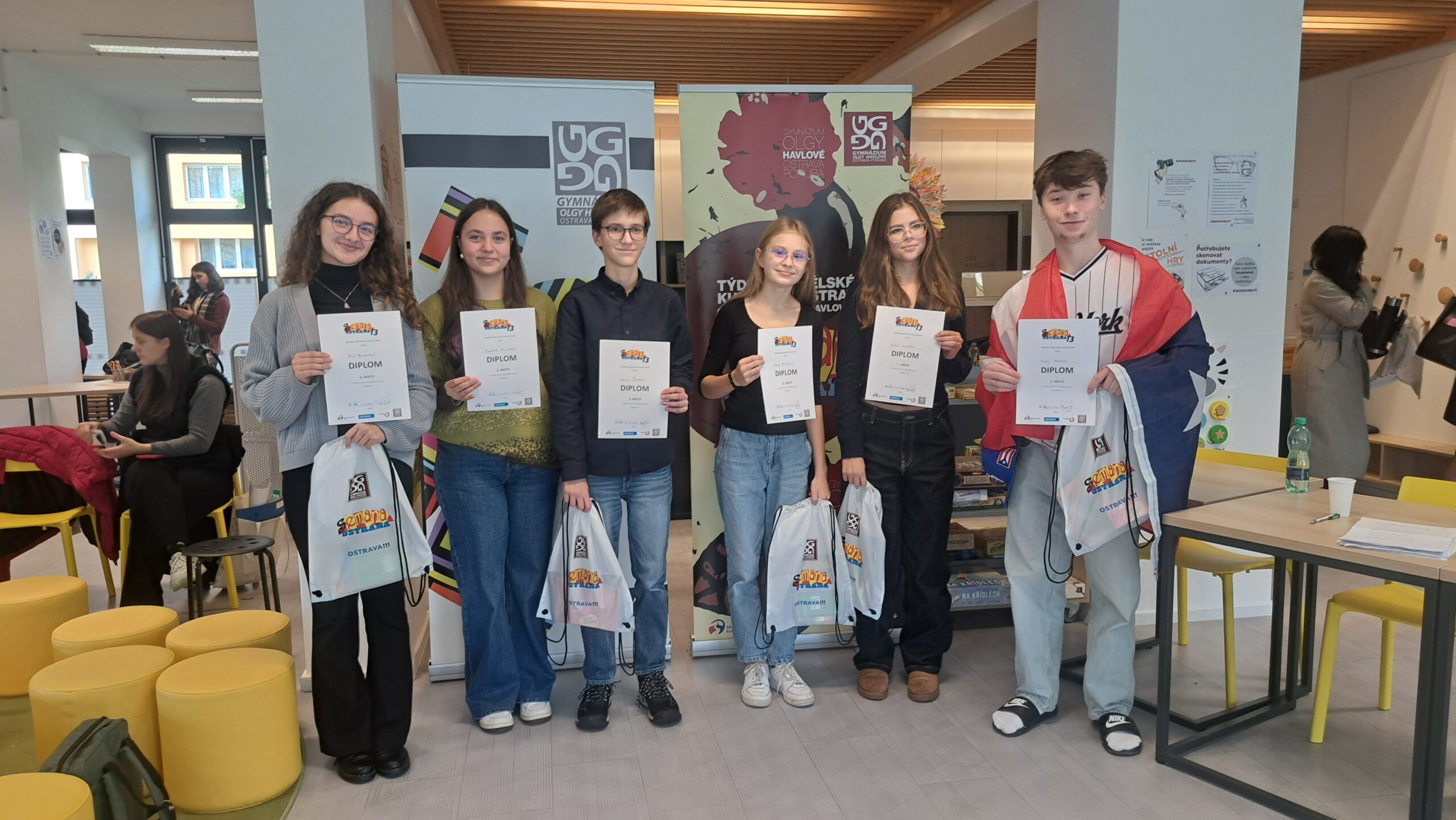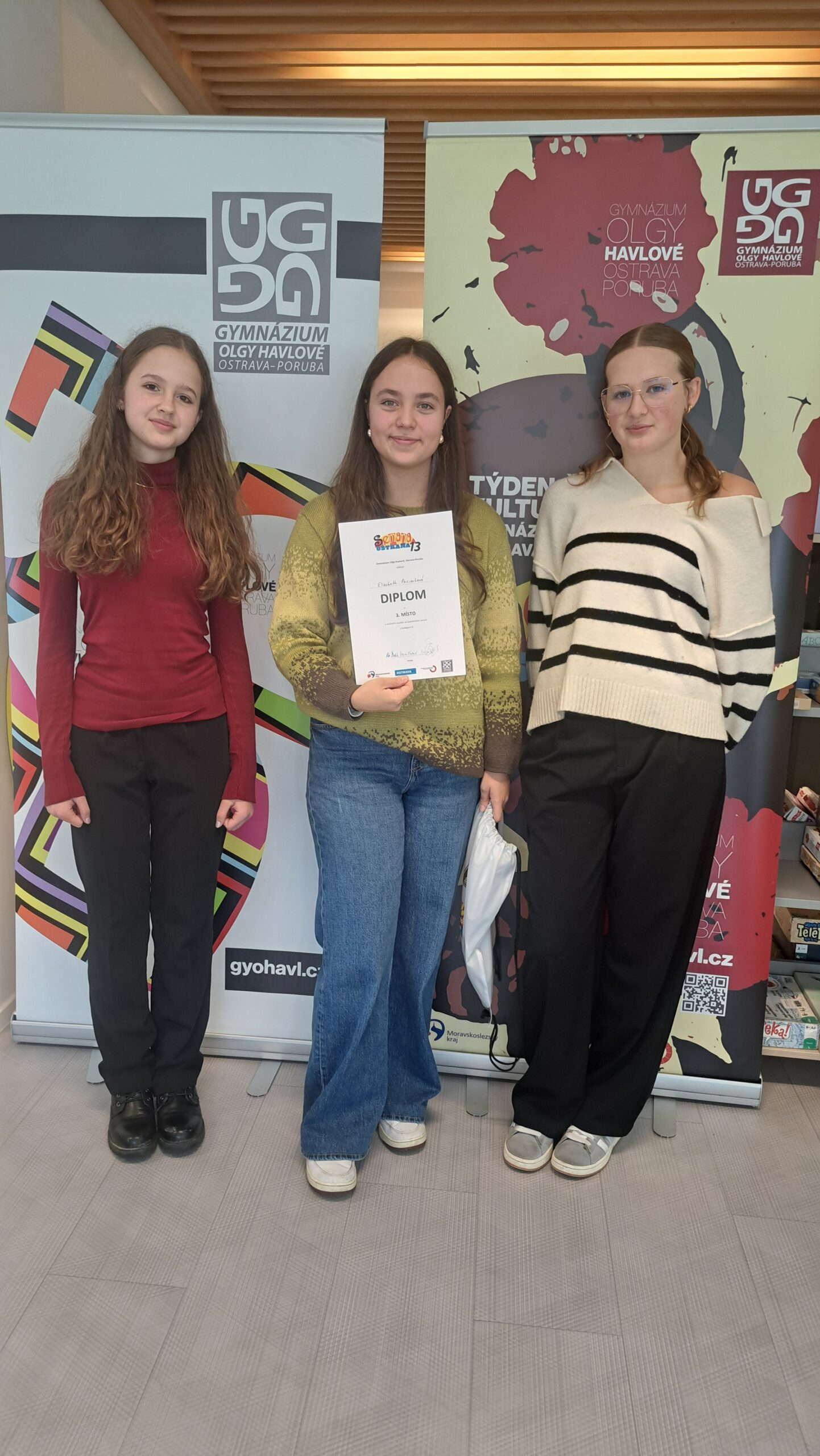 V pondělí 13. října jsme stejně jako každý rok vyrazili do Ostravy, abychom se zúčastnili recitační soutěže ve španělském jazyce, kterou pořádalo Gymnázium Olgy Havlové. Letos měla naše škola hned tři želízka v ohni – Elizabeth Paciorkovou (6. C), Annu Beloritovou (4. C) a Sofii Hindmarch (3. B), které soutěžily v kategorii starších studentů.